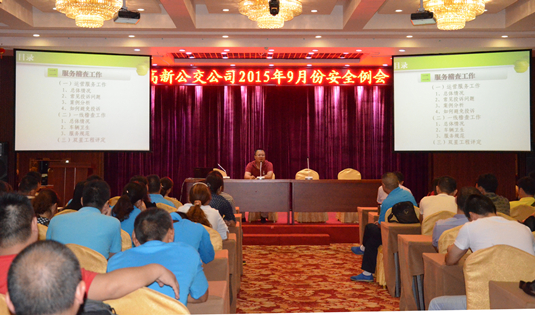 會(huì )上,運營(yíng)管理部工作人員首先就2015年度前三季度安全、機務(wù)等方面做了總結性匯報,重點(diǎn)就各線(xiàn)路1-9月份安全工作進(jìn)行通報,同時(shí)播放事故、危險路段、違規違紀現象等警示圖片并進(jìn)行分析,讓駕駛員進(jìn)一步重視事故易發(fā)路段的危險性,以此提醒各位駕駛員注意行車(chē)安全,提高安全。隨后,法規稽查部針對前三季度公司接聽(tīng)的投訴電話(huà)、乘客關(guān)心的問(wèn)題分別進(jìn)行了匯報,并就容易對乘客誤解和投訴的行為進(jìn)行了詳細的解讀。