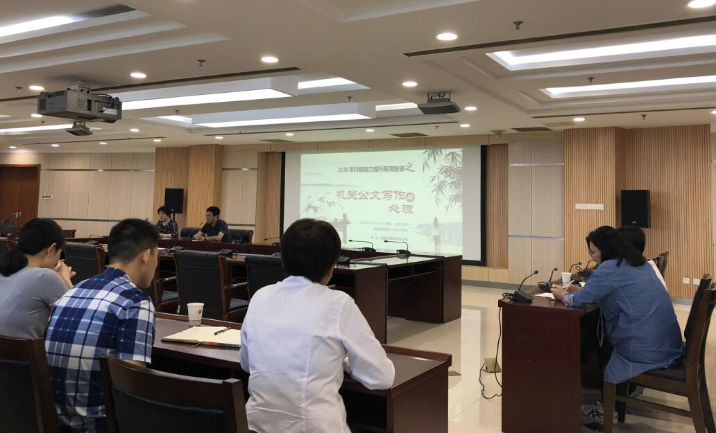 培訓會(huì )以“公文寫(xiě)作與處理”為主題,由合肥市政府辦公廳姜敏老師主講,姜老師從公文的概述、種類(lèi)、格式、規則及注意事項五大方面進(jìn)行講解。其中著(zhù)重說(shuō)明幾種易混淆文種,并依實(shí)例加以解說(shuō),加深理解;隨后又對公文的字號字體進(jìn)行說(shuō)明。姜老師提出公文寫(xiě)作中,使用非法定文種行文、缺少生造文種、以文種作為公文標題、文種重疊使用、文種錯用混用等都是很常見(jiàn)的問(wèn)題,必須通過(guò)學(xué)習加以杜絕,從而進(jìn)一步規范公文寫(xiě)作。