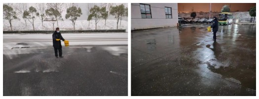 隨著(zhù)一日的降雪結束即將迎來(lái)低溫結冰的新考驗,高新公交增加夜間值班人員,加強場(chǎng)站巡查頻次,第一時(shí)間掌握各場(chǎng)站情況,同時(shí)在場(chǎng)站道路上撒布融雪鹽防止道路低溫結冰,確保車(chē)輛晚間及次日進(jìn)出安全。